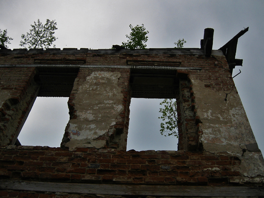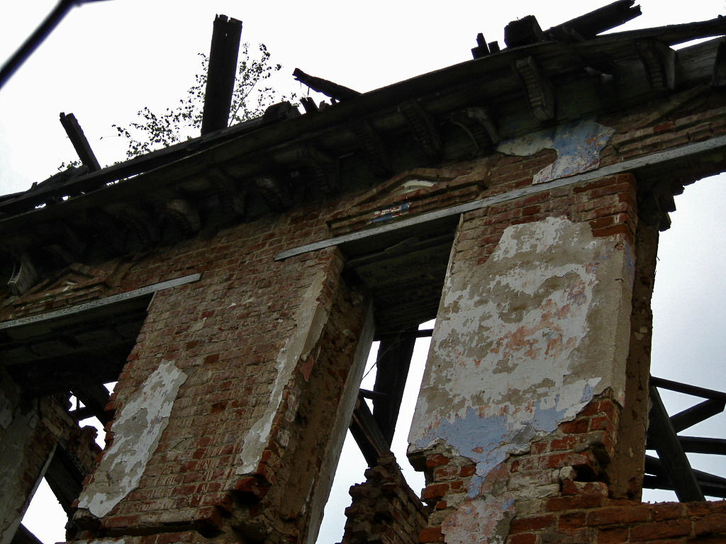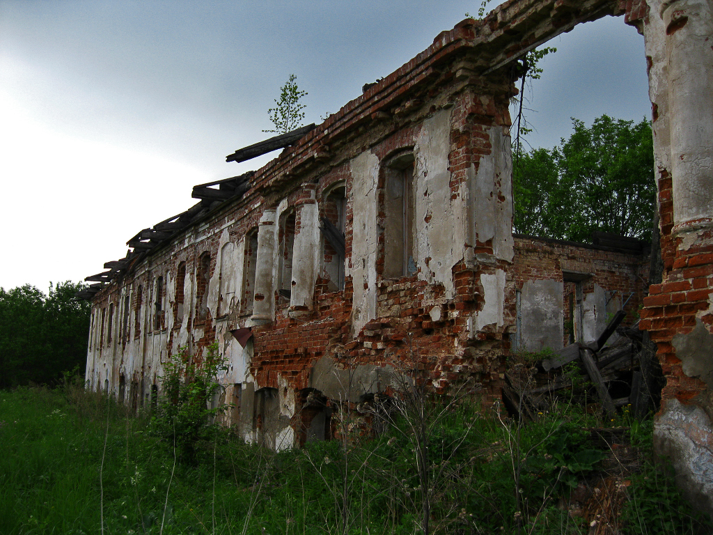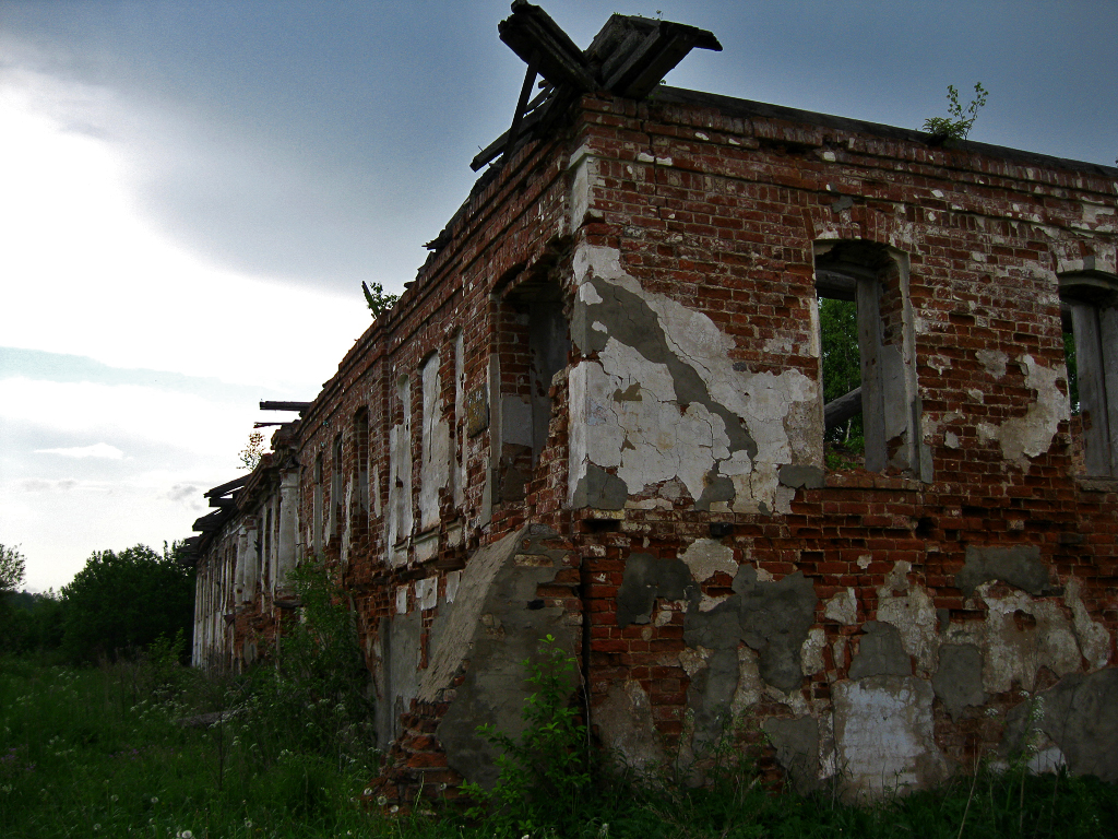 Корпус братских келий. Здания стали интенсивно разрушаться после закрытия психо-неврологического интерната. Почти сразу было снято железо с крыш.