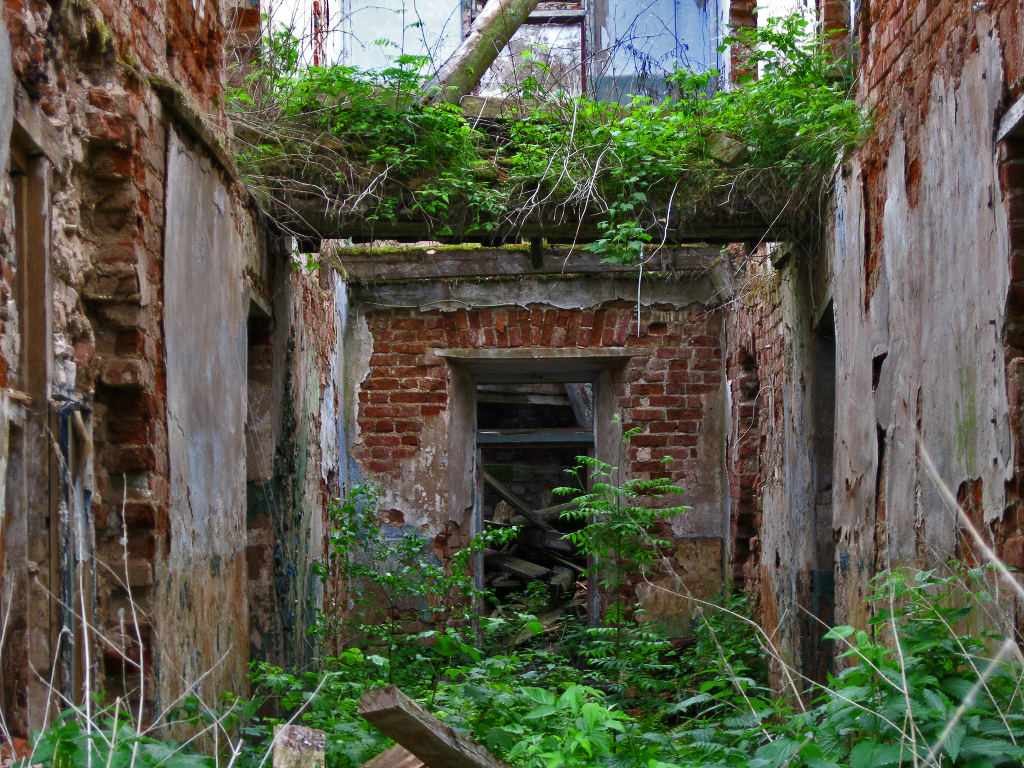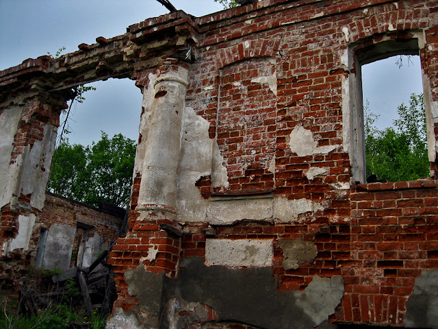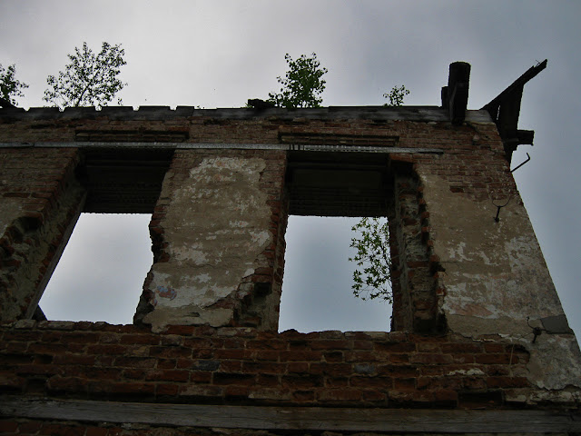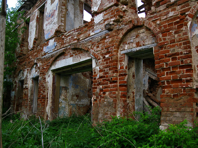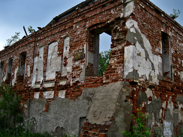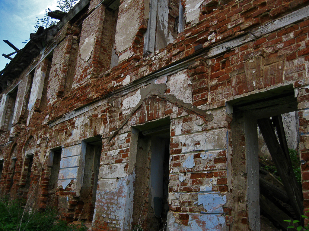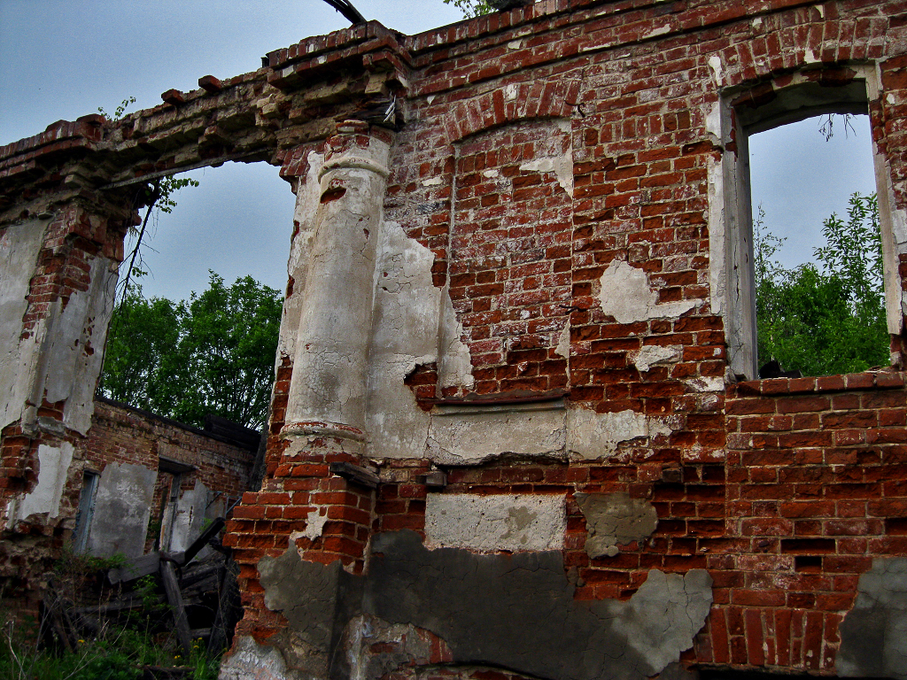 Корпус братских келий. Здания стали интенсивно разрушаться после закрытия психо-неврологического интерната. Почти сразу было снято железо с крыш.
