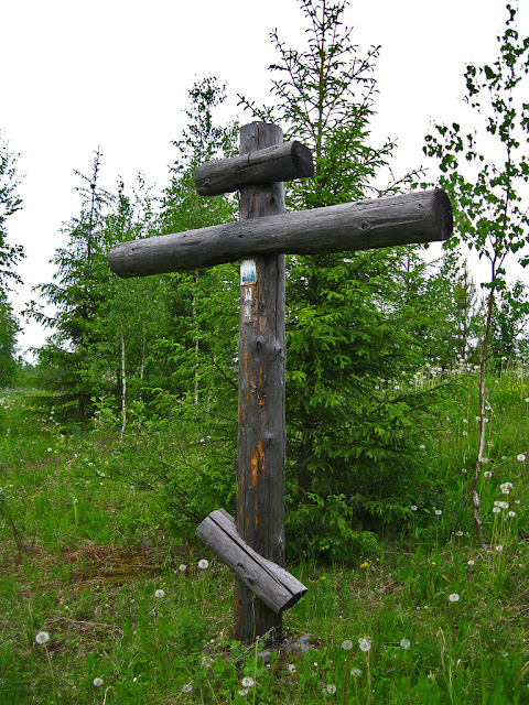 Поклонный крест, который был установлен на месте Соборной церкви участниками экспедиции «Возрождение» — учениками Семигородской школы и Харовской воскресной школы