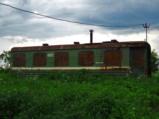 Местное применение старых вагонов знаменитой семигородней узкоколейной дороги.От часовен до магазинов и бань.