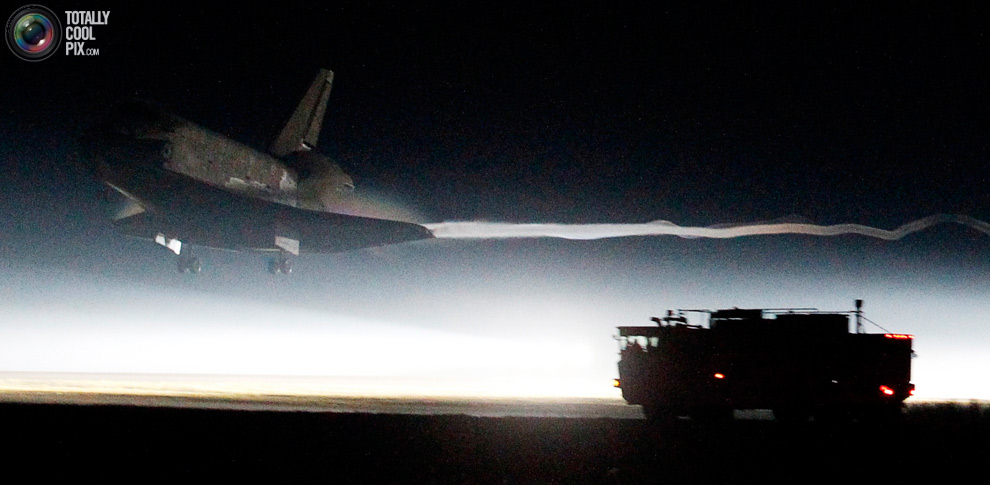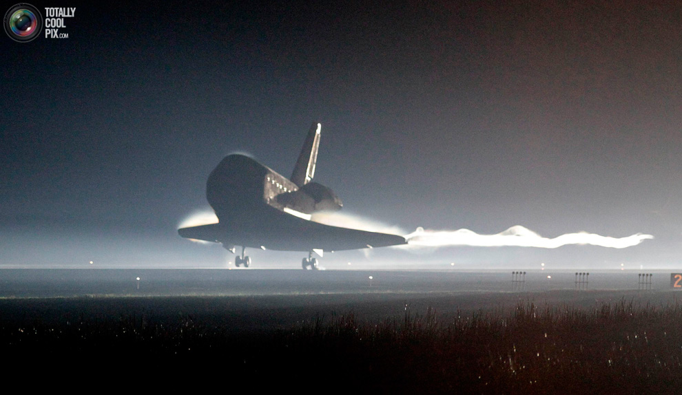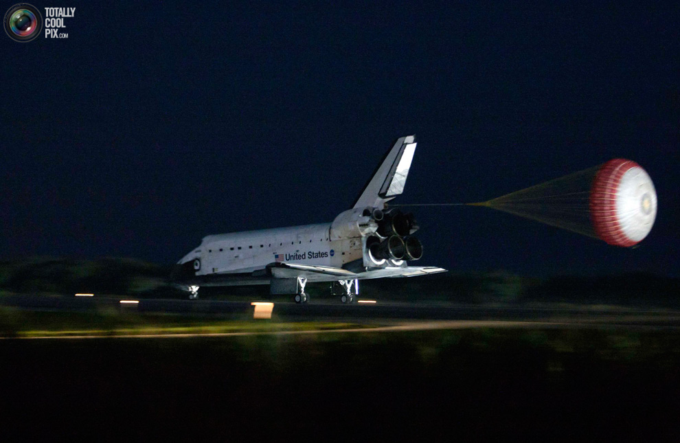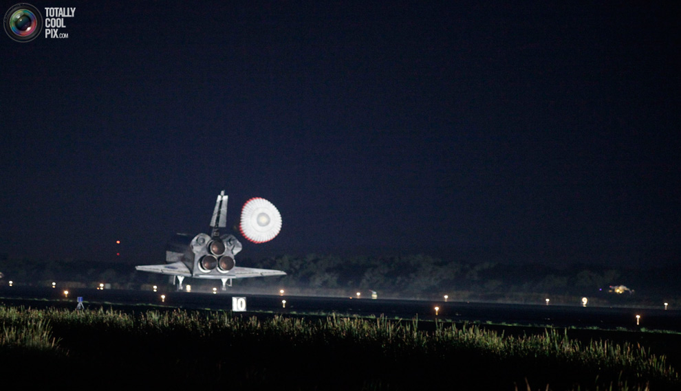 Сегодня ночью,перед самым рассветом в 5.58 утра по местному времени,в Kennedy Space Center во Флориде,приземлился шаттл "Атлантис".Миссия продлилась 12 дней, 18 часов, 28 минут и 55 секунд.Этим полётом закончилась эра космических челноков.30 лет полётов,135 рейсов,335 астронавтов (14 из них погибли,на шаттлах Columbia и Challenger).