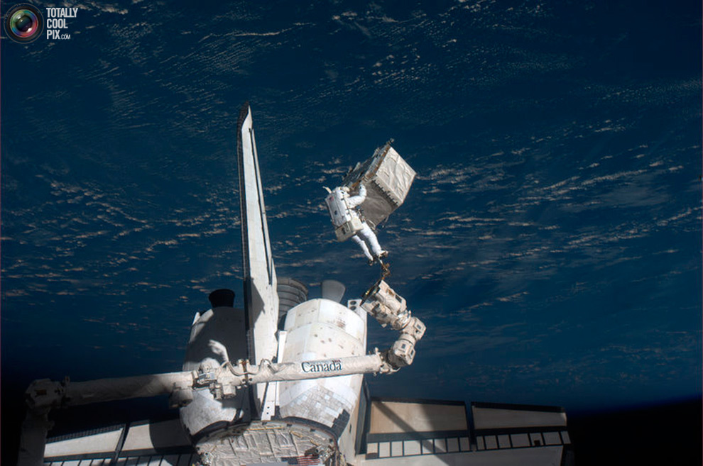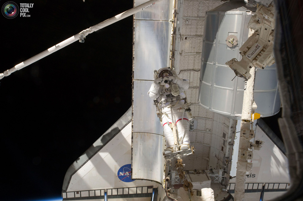 | Астронавт НАСА Майк Фоссум делает снимок Атлантиса во время последнего выхода в космос.12 июля,REUTERS / NASA |