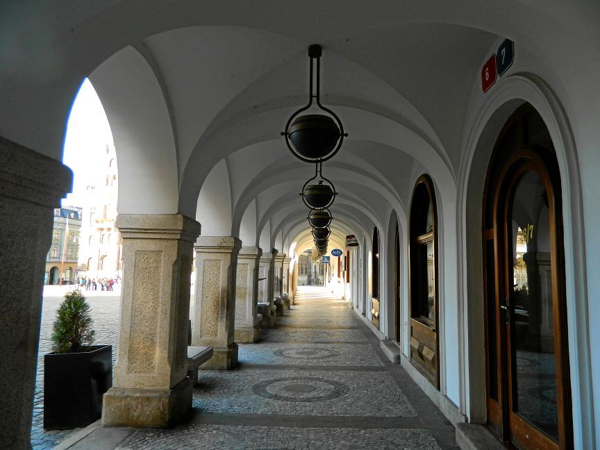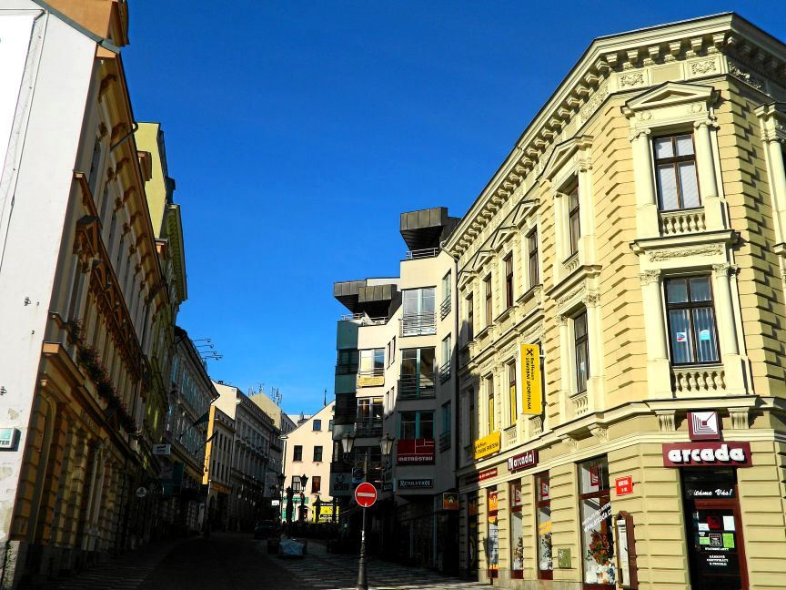 Соколовская площадь — ее с площадью Бенеша разделяет всего несколько десятков метров. Дома на ней мне показались более красивыми, чем на центральной площади.