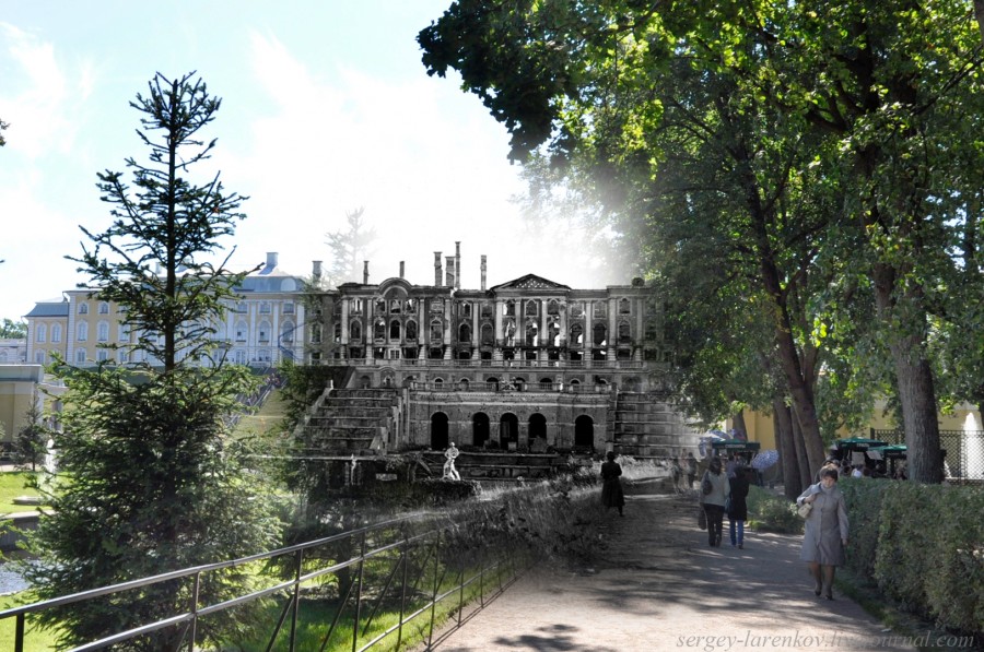 На верхнем фото Петергоф 1943-2011 Нижний парк. (Peterhof 1943-2011 Lower Garden.)