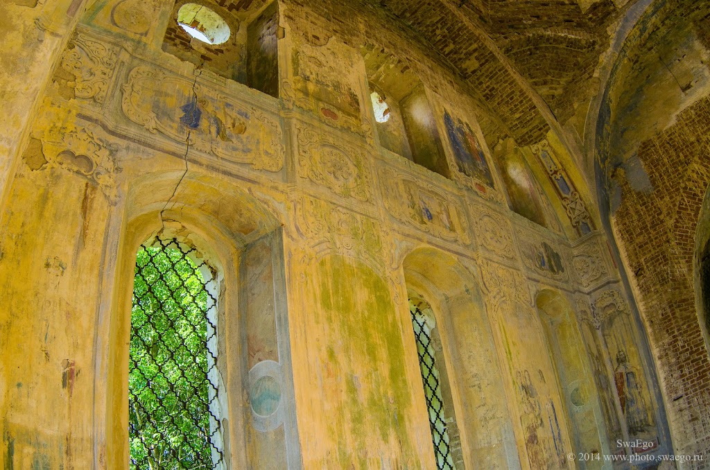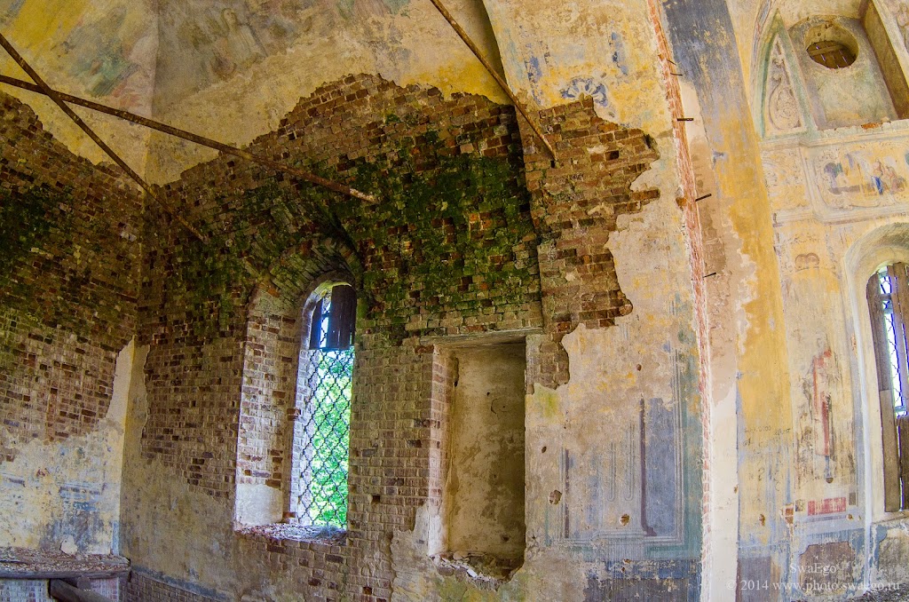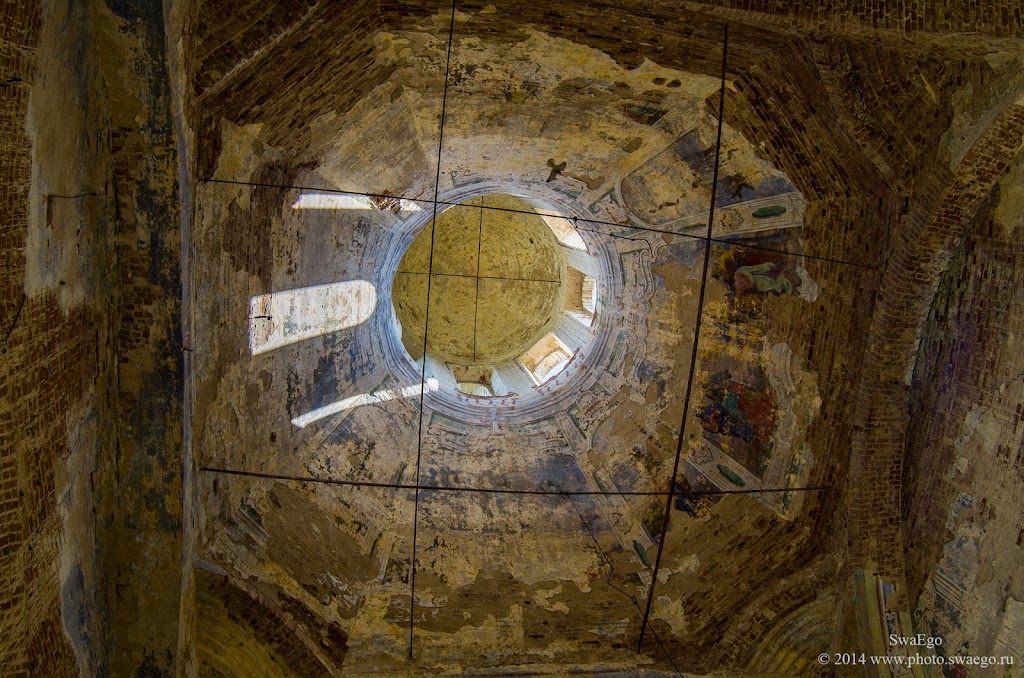 Говорят, что в крест попала молния и он рухнул вовнутрь.