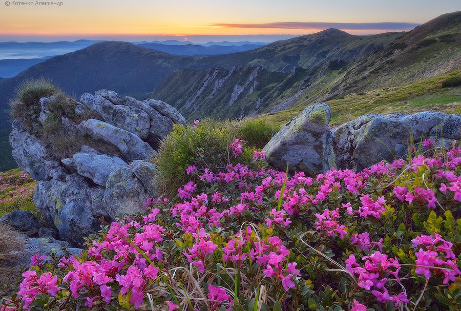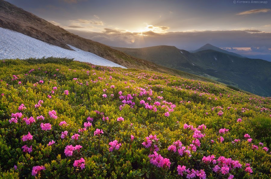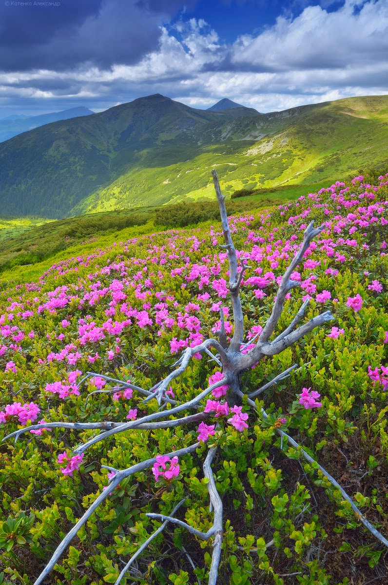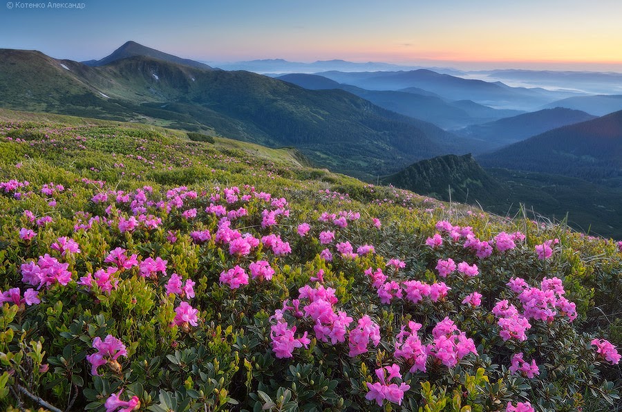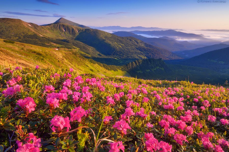 Невероятно красивое зрелище можно наблюдать в Карпатах в июне. Огромные поляны цветущего рододендрона покрывают склоны гор красными коврами. В народе его называют "Червона Рута". Для горцев это особенный цветок, его любят и почитают, воспевают в народном творчестве, как и Эдельвейс, увидеть который считается за счастье. Рододендрон Восточнокарпатский растет только на самых высоких горных хребтах и это большая удача попасть на пик его цветения.