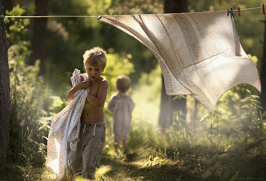 Потрясающие снимки создаёт Елена Шумилова, фотографируя своих детей Ярослава и Ивана с разными животными на фоне русской провинции.