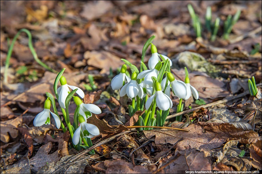 Распустившихся бутонов еще совсем мало, из-под лиственного ковра только-только начинают пробиваться маленькие зеленые стрелы