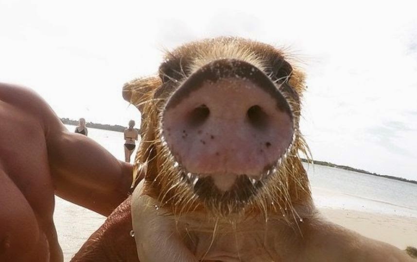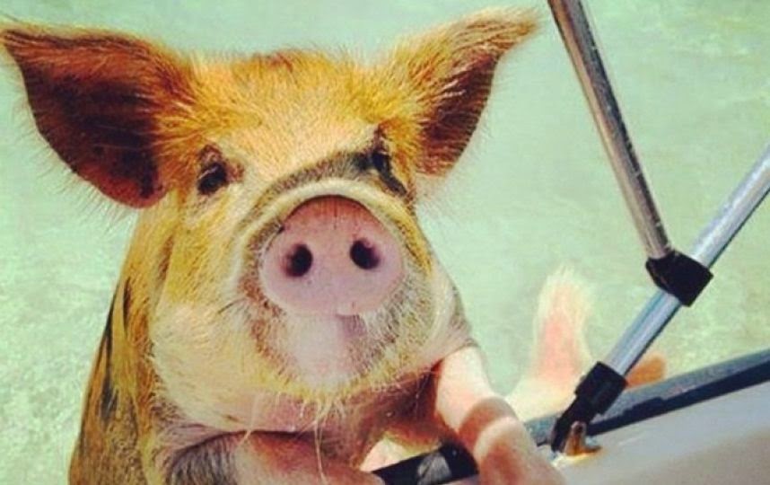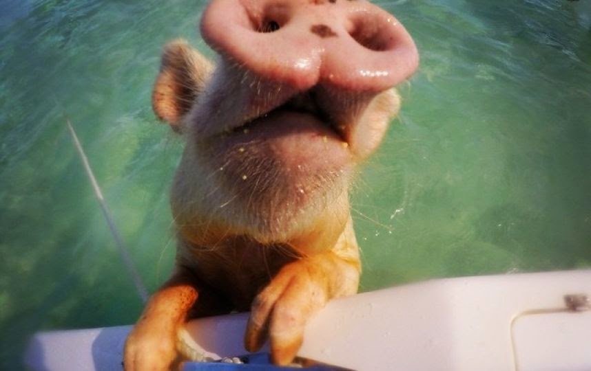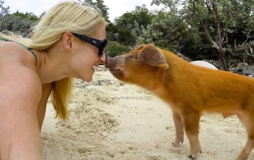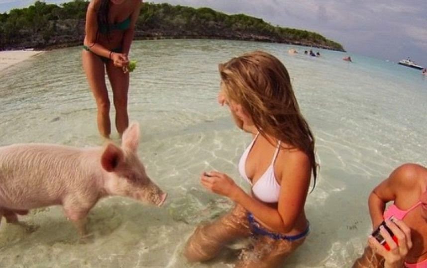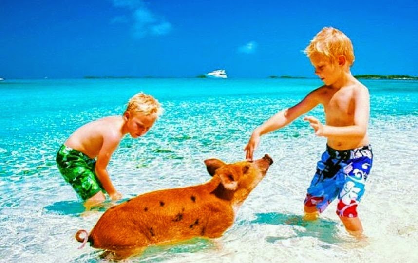 Компания, которая базируется на Багамских островах, предлагает несколько видов туристических услуг, среди которых есть и возможность побарахтаться в море с поросятами. Облюбованный животными пляж также называют не иначе, как Пиг Бич ("свиной пляж"). На этом пляже обитает несколько десятков свинок разного возраста, которые совершенно не боятся человека и никогда не прочь поиграть с ним.