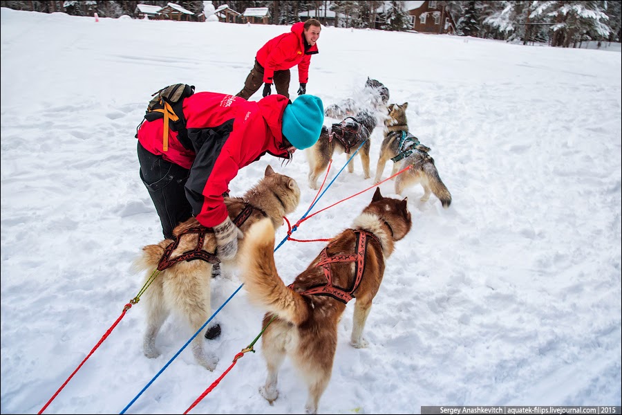 Поэтому когда мне предложили принять участие в тест-драйве ездовых карельских хаски, я не раздумывал ни секунды, ведь когда еще предоставится такая возможность?Отменная динамика, довольно высокая скорость, хороший запас хода, дружелюбие и высокая проходимость по снегу и льду — вот основные преимущества собачьей упряжки как транспортного средства. А видели бы вы, как у них работает система охлаждения! Куда там автомобильным радиаторам)