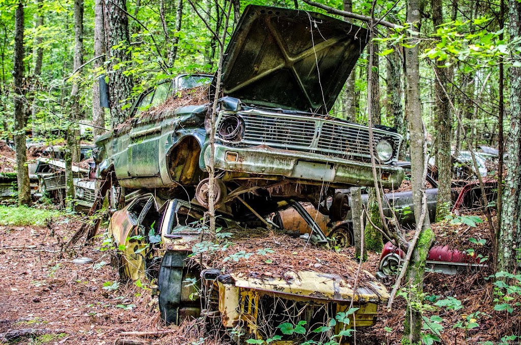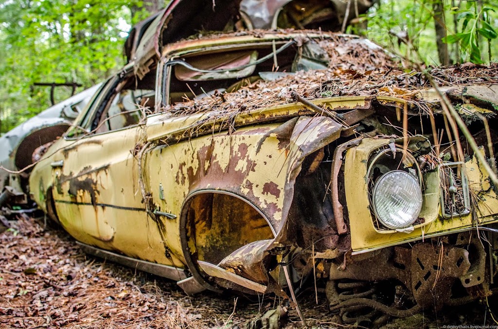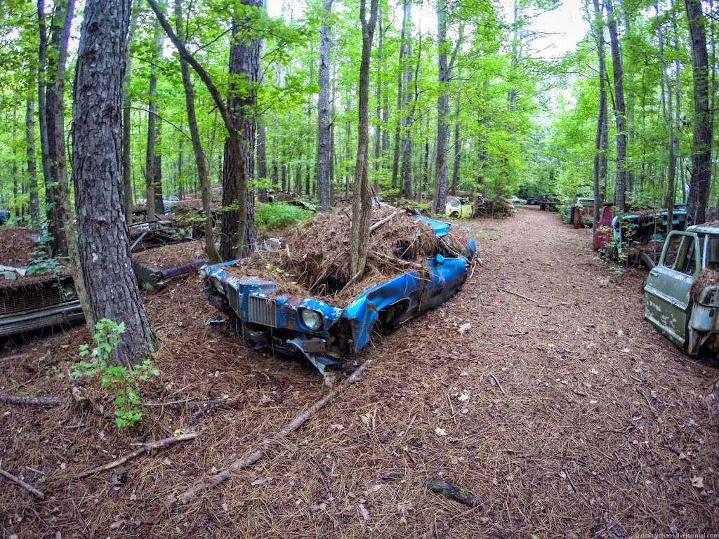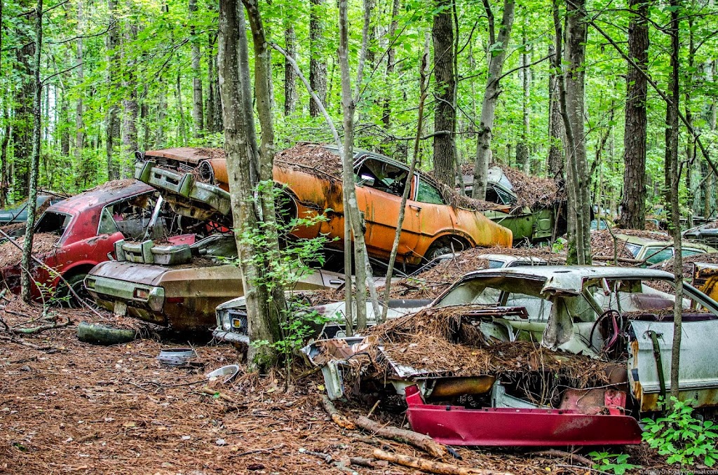 Автомобили находятся здесь так давно, что через многие из них проросли деревья: