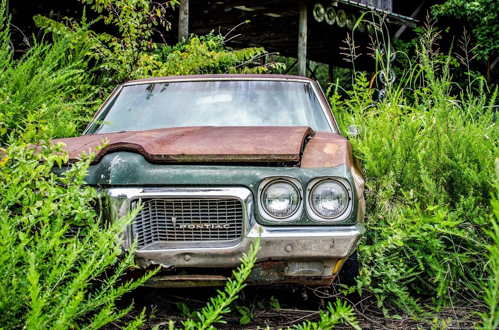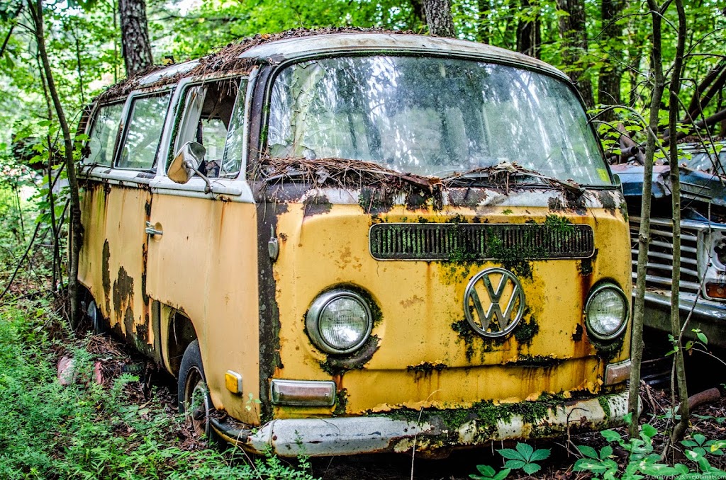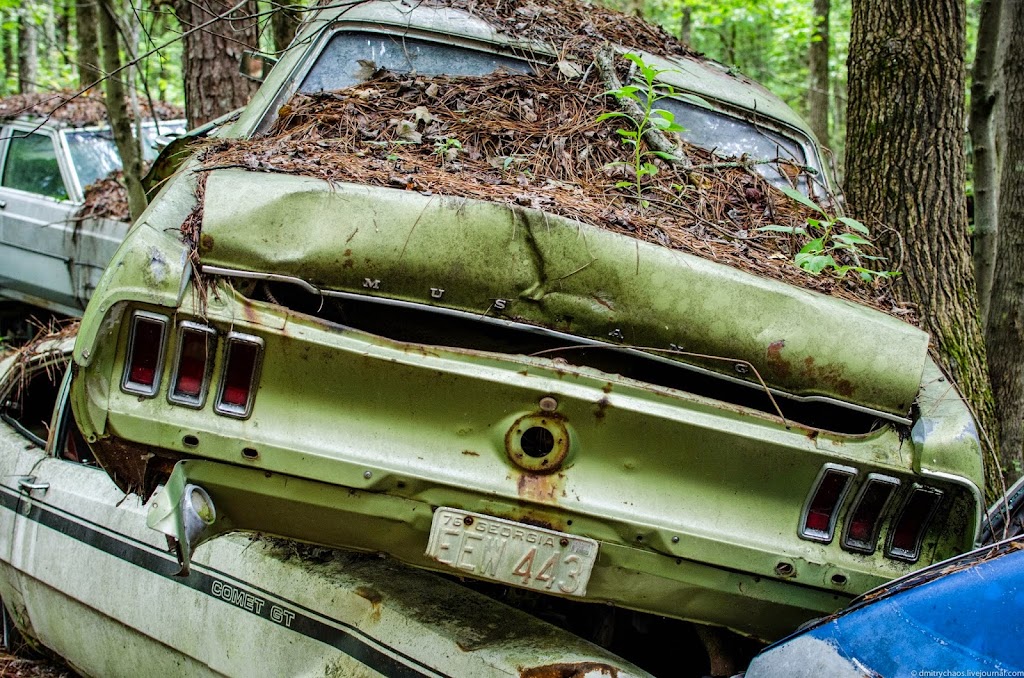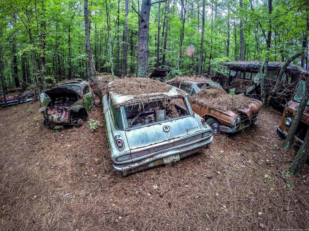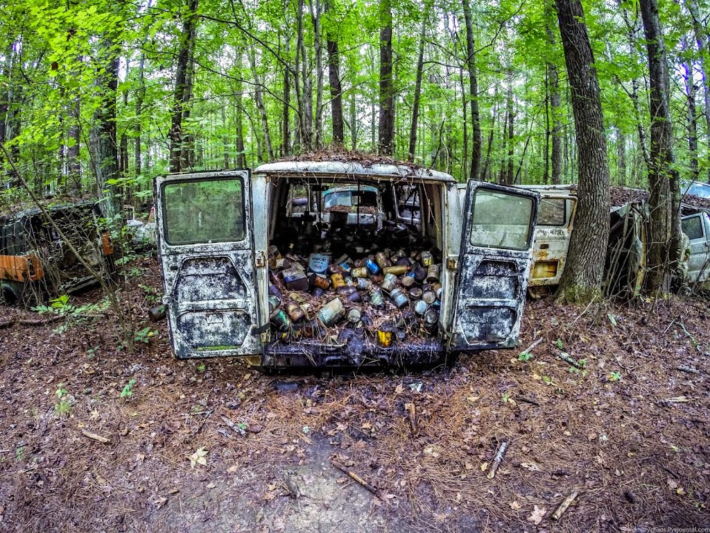 Автомобили находятся здесь так давно, что через многие из них проросли деревья:
