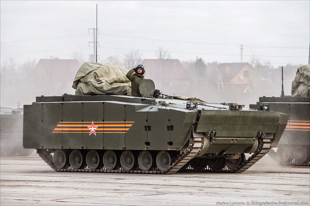 Много новинок техники. Все, что прикрыто брезентом, до 9 мая показывать не будут.