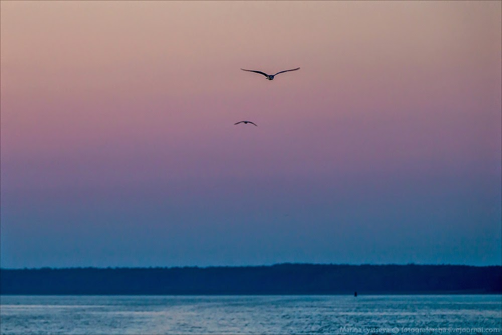 Чайки совершают вечерний обход в надежде выцепить рыбку.