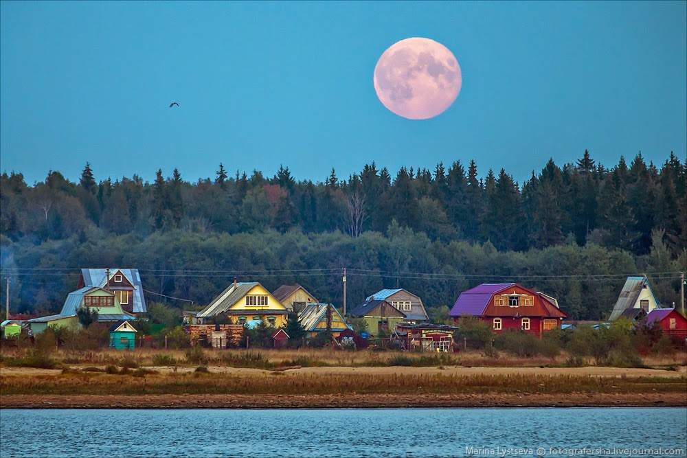 Каменниковский полуостров. Сентябрьское полнолуние над Рыбинским водохранилищем.
