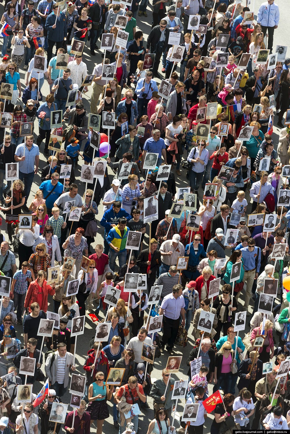 После военного парада по площади Ленина прошли участники акции "Бессмертный полк" с плакатами своих родных и близких, принимавших участие в Великой Отечественной войне.