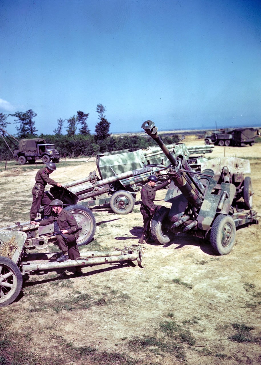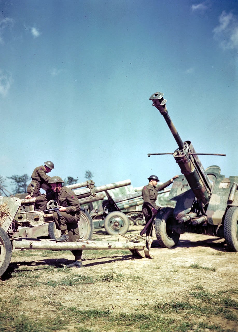 Канадские солдаты разглядывают немецкие трофейные орудия