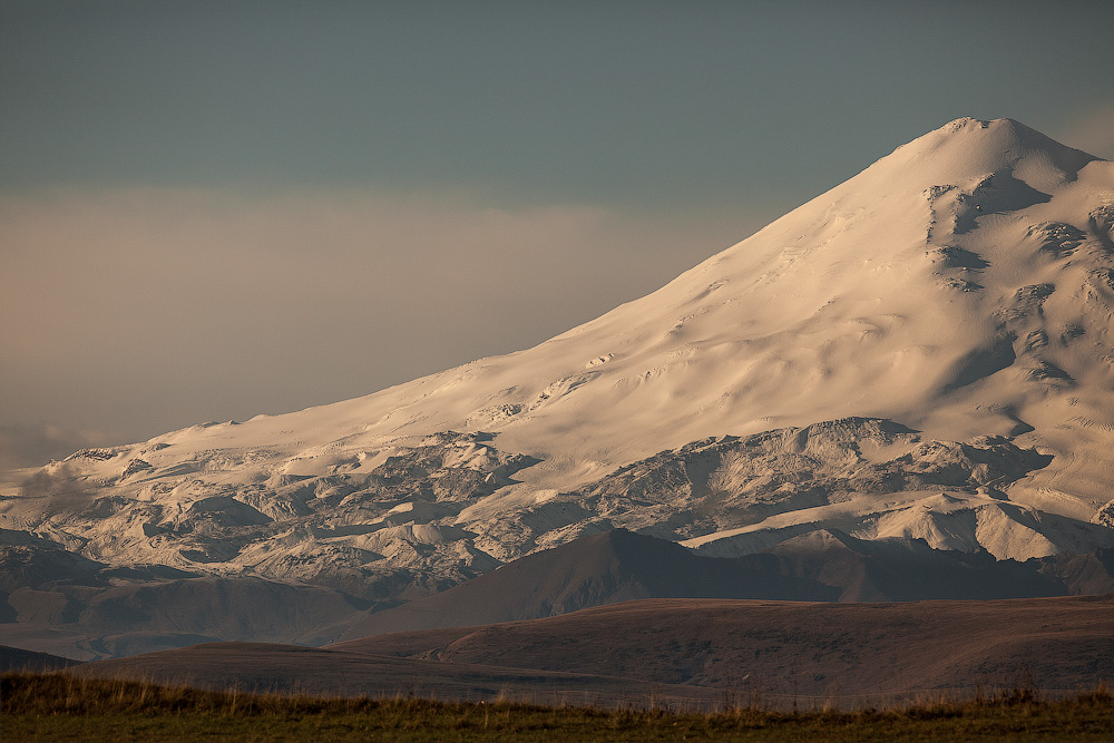 И панорама Эльбруса на рассвете. Ползунок под картинкой двигаем вправо