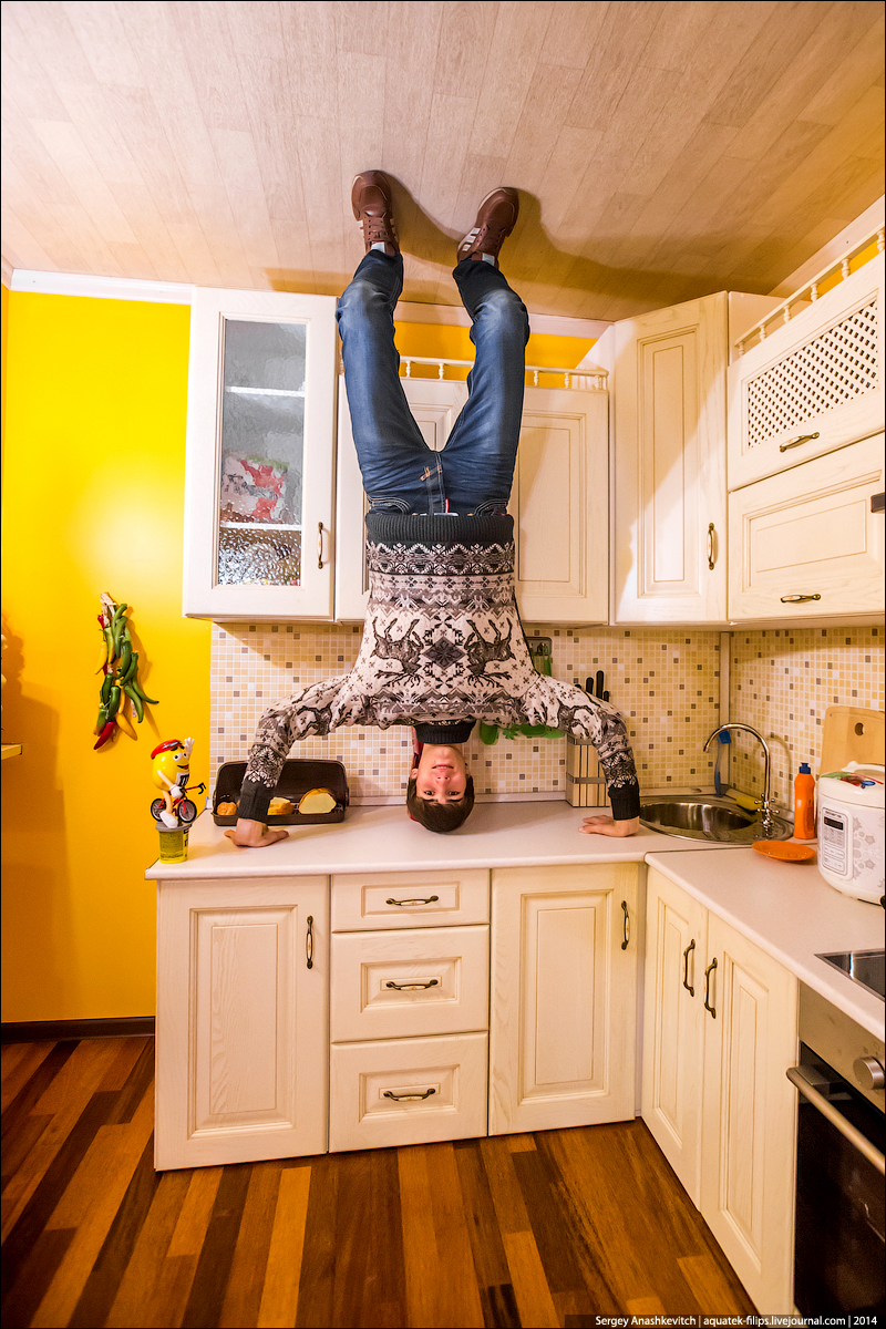 Так как мы умеем теперь ходить вверх ногами, отдыхать можно где угодно — на потолке, на шкафах, в самых недоступных ранее местах