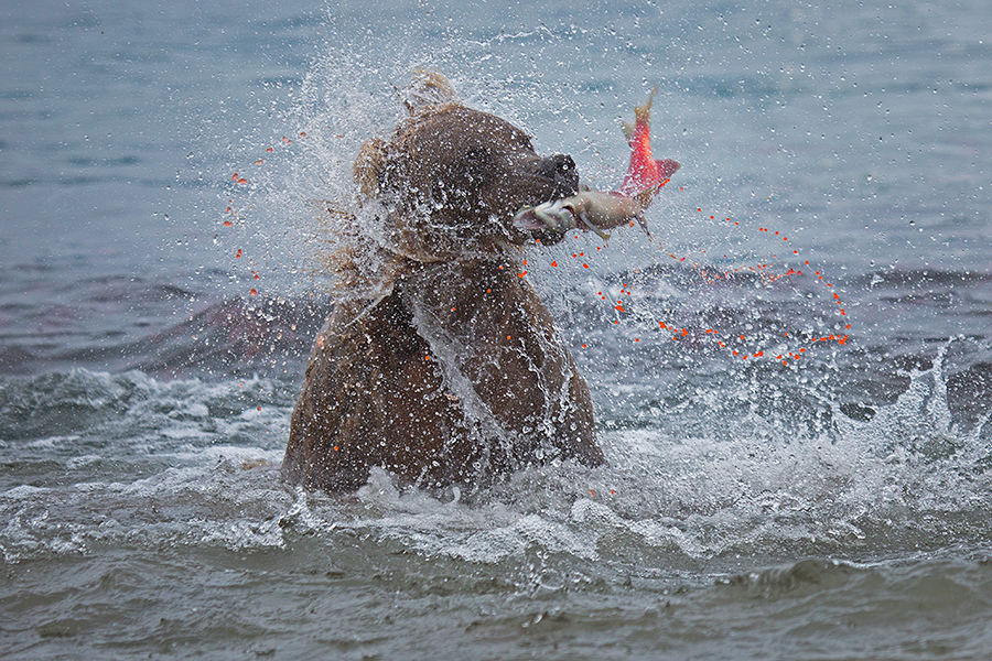 Вторая группа это молодые медведи, которые уже оставили маму и живут сами по себе. По мне им тяжелее всего рыбачить, так как мало опыта и чтобы поймать одну рыбу некоторым приходилось совершать по 5-6 бросков за ней, в то время как уже опытному медведю достаточно сделать один. Ну и порой получают нагоняй от взрослых медведей за то что вторгаются на их места для рыбалки.