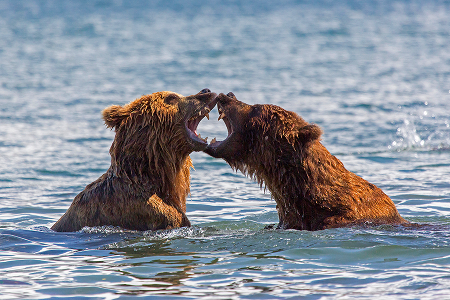 Конфликтные ситуации среди медведей не редки. Один раз медведица решила проучить близко подошедшего к медвежатам самца, и погнала его, когда тот уже было отбежал на него кинулся медвежонок и тот опешив отбежал еще дальше. Вот что значит смелость когда за спиной стоит Мама