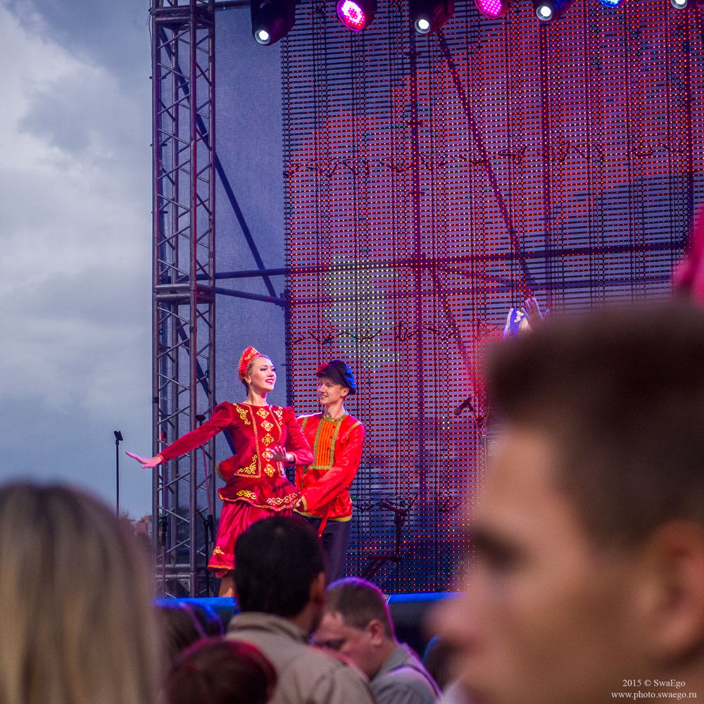 Вообщем-то было достаточно весело и всё здорово организовано, но к вечеру начался такой ливень с грозой, что я вымок до нитки моментально, да и камера тоже. Пришлось сваливать. В итоге не посмотрел выступление группы "Ногу свело", световое лазерное шоу "3D mapping" и салют. Печально, ну да ладно.