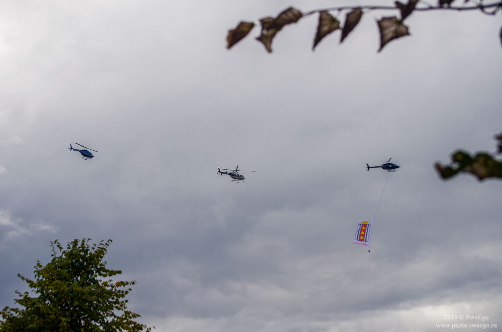 Пролёт трёх вертолётов с флагом города организаторы назвали "авиа-шоу"