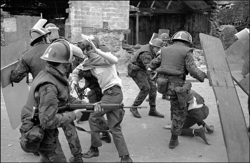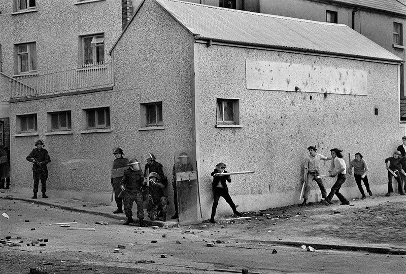 Противостояние ирландцев с британскими солдатами на улицах города Лондондерри в Северной Ирландии. 1971 год.