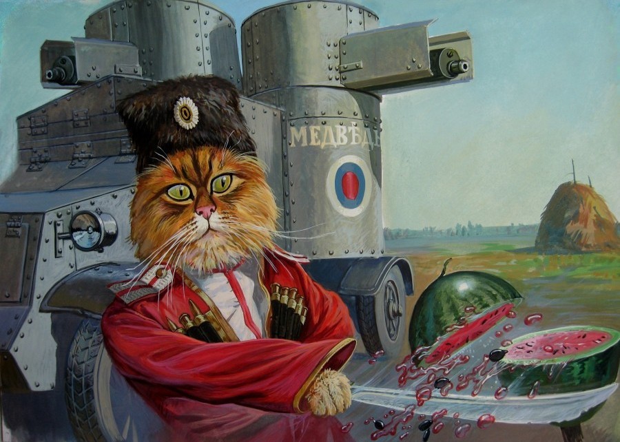 Серия работ художника Александра Завалия "Эпические коты" ("Epical cats")