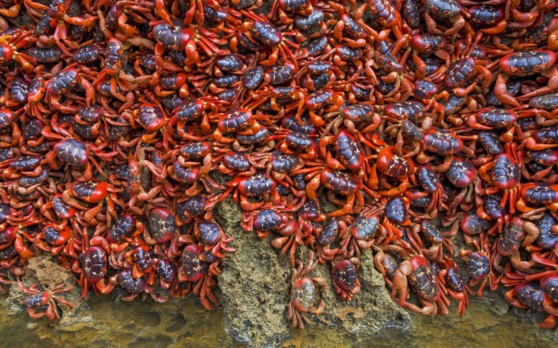Уникальное природное явление можно наблюдать на австралийском острове Рождества. Ежегодно в ноябре или декабре миллионы красных крабов мигрируют из тропических лесов, расположенных в центральной части этого небольшого клочка суши, на побережье Индийского океана для размножения. Начало передвижения зависит от погодных условий — смены фазы луны и дождей.