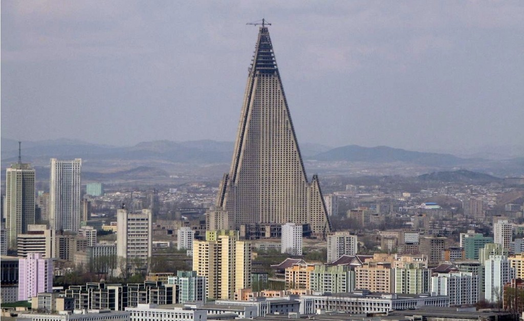 Работы по строительству 105-этажного отеля Рюгён начались за несколько лет до массового голода, охватившего Северную Корею. Строительство было заморожено на 16 лет, однако в 2008 году работы начались вновь. Тогда здание был полностью покрыто стеклом за 150 млн. долларов. Иностранные гости сообщили, что сейчас здание снаружи выглядит завершённым, однако внутри ещё не сделан ремонт.