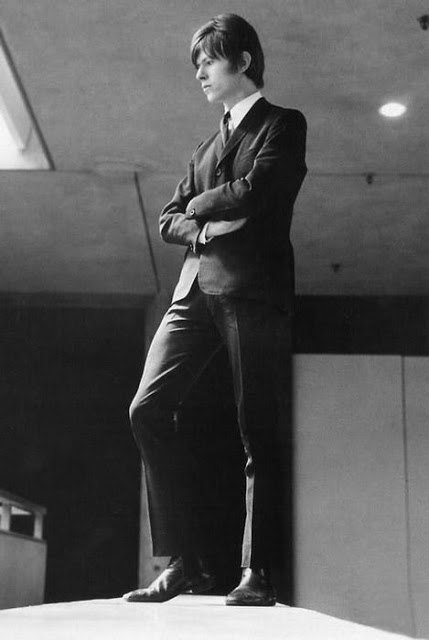 | A brooding sharp suited David Bowie in his mod days |