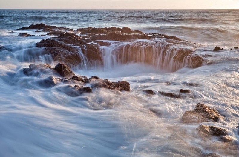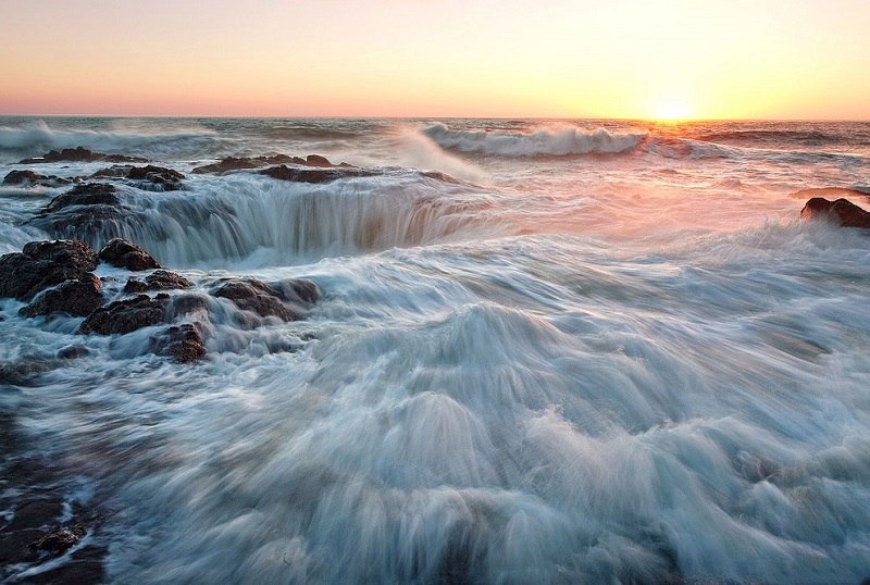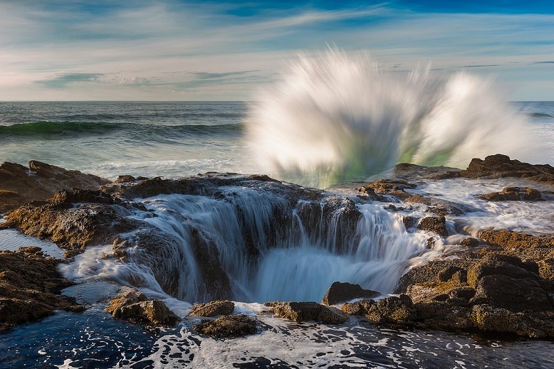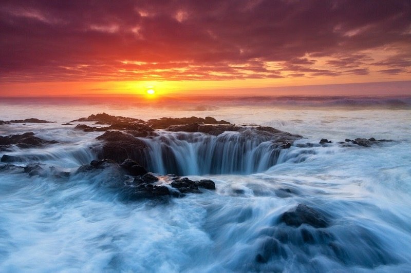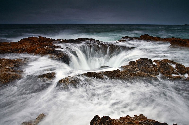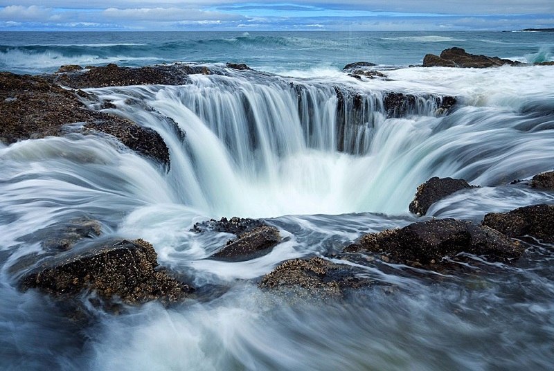 Колодец Тора располагается на мысе Перпетуа в центральной части побережья штата Орегон и представляет собой каменную воронку глубиной несколько метров, которая во время приливов, отливов или штормовых ветров превращается в настоящий фонтан, взрывающийся миллионами соленых брызг. Самое сильное впечатление оказывает стекающая внутрь колодца вода, создающая картинные пейзажи на фоне мыса Перпетуа и заходящего светила. При этом Колодец Тора становится похожим на уходящие глубоко на дно таинственные врата в подземный мир.