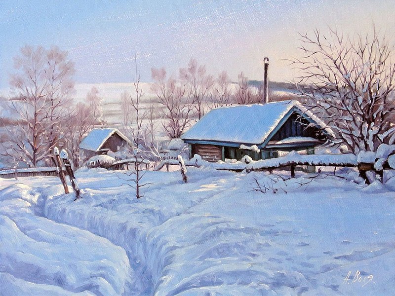 Зимние деревенские пейзажи от художника Александра Воли