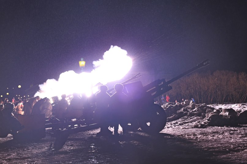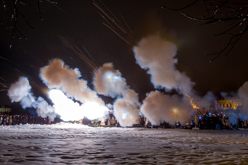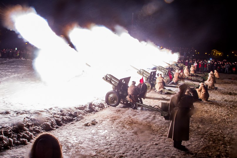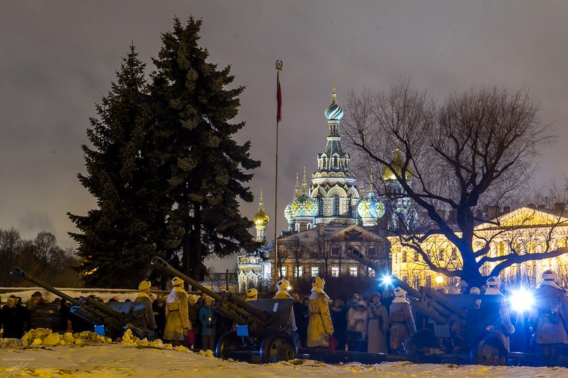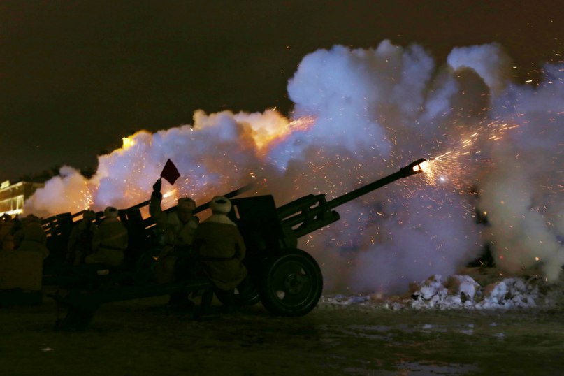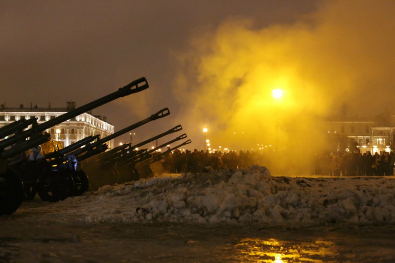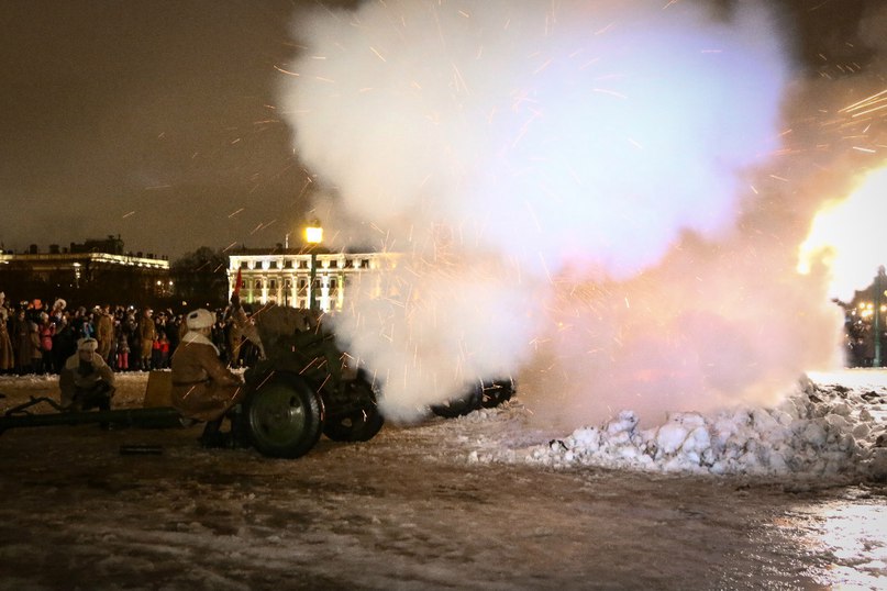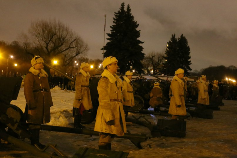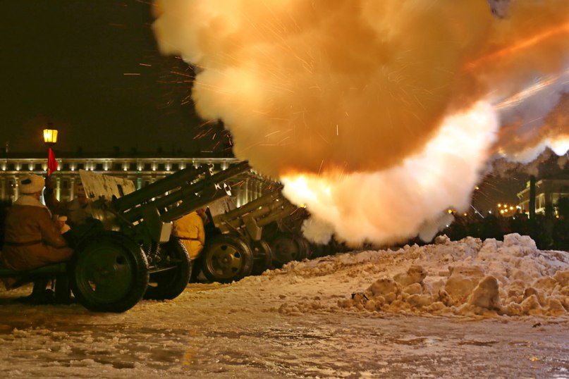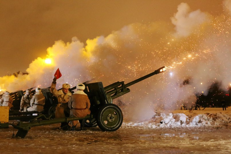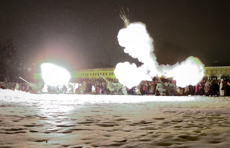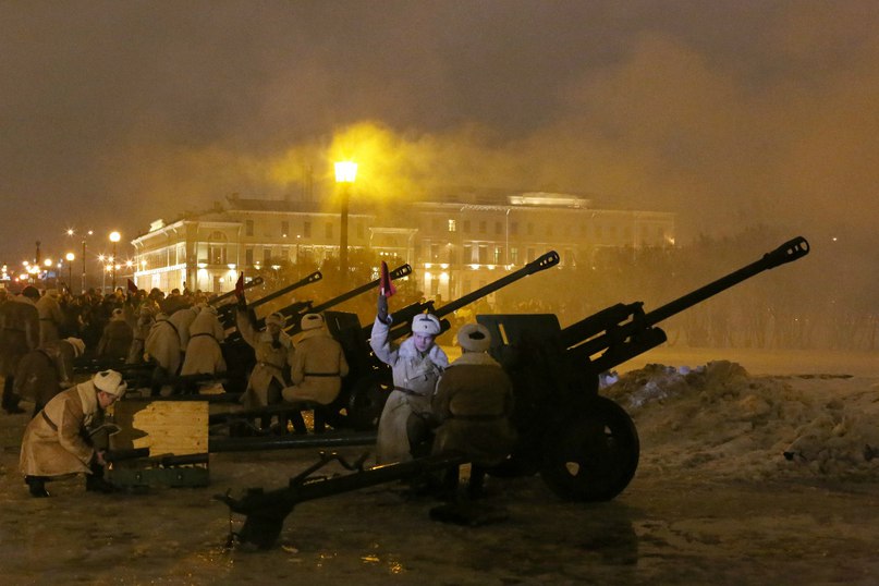 Первая военно-историческая реконструкция артиллерийского Салюта во знаменование полного снятия блокады Ленинграда.