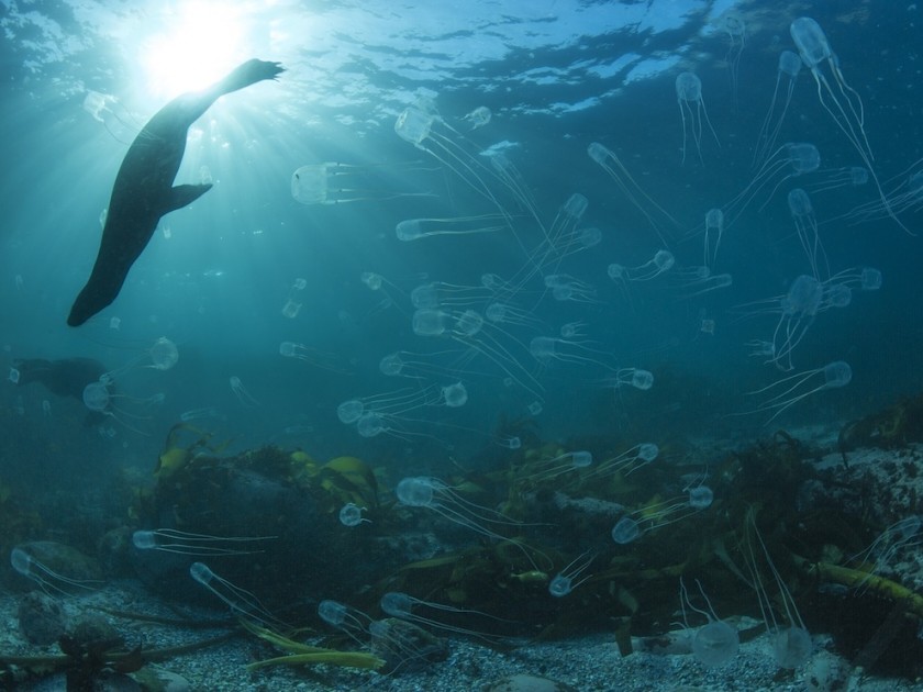 Seals and jellyfish - national park to Table Mountain by Thomas P. Peschak