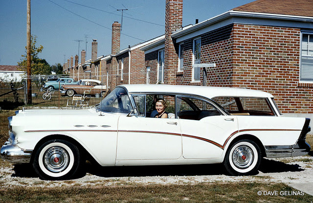 50 цветных фотографий классических автомобилей Buick на улице в 1950-х годах