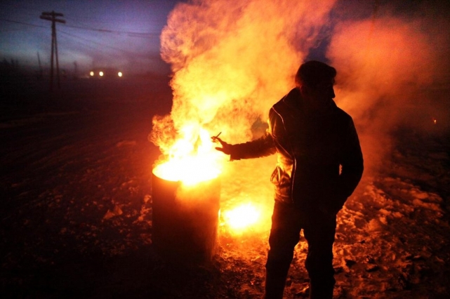 Заправка на пути в Оймякон. Автомобили должны работать непрерывно, поэтому заправки работают круглосуточно, а их сотрудники – в режиме две недели через две.