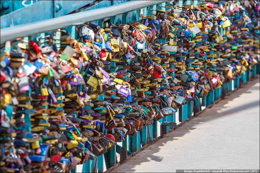 Поэтому новые замки вешают просто на дужки уже висящих, образуя целые грозди