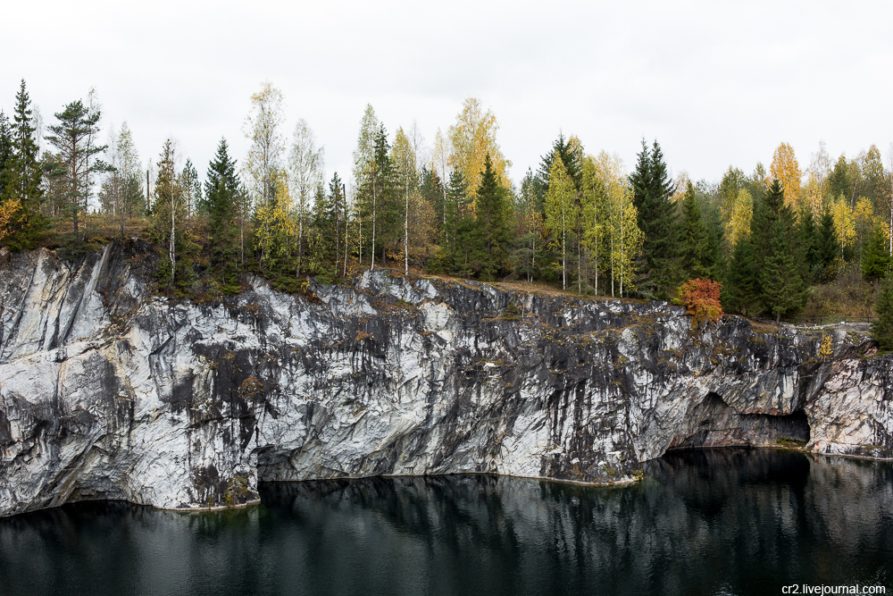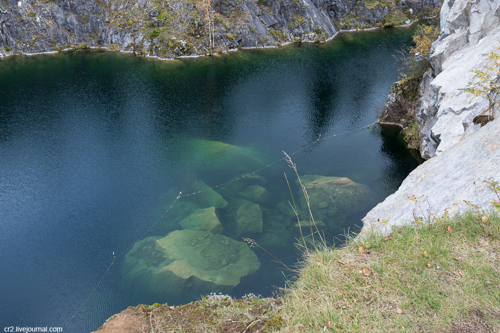 Ещё мне очень понравился Итальянский карьер, расположенный недалеко от провала и основного каньона. «Итальянский» — потому что здесь с 1974 по 1986 года добывали мрамор, используя итальянские станки