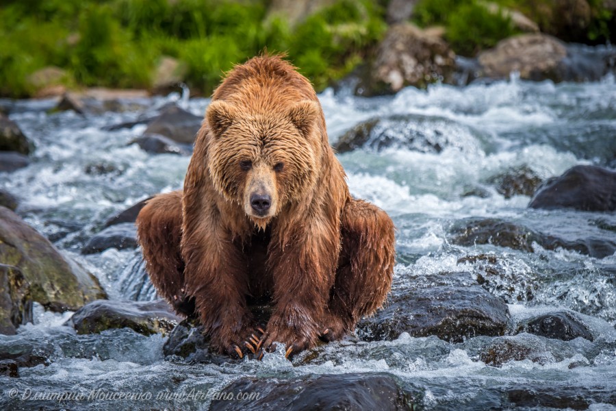 "Снимать медведей на Камчатке сложно и просто. Сложно, потому что до них надо добраться. Самолет, вертолет… Просто, потому что, когда до них доберешься, вот они, по одному и кучками. Ты их мало интересуешь, потому что ну кто такой фотограф в сравнении со свежей рыбой из речки, к тому же наполненной вкусной красной икоркой. Мы не входим в их пищевую цепочку.