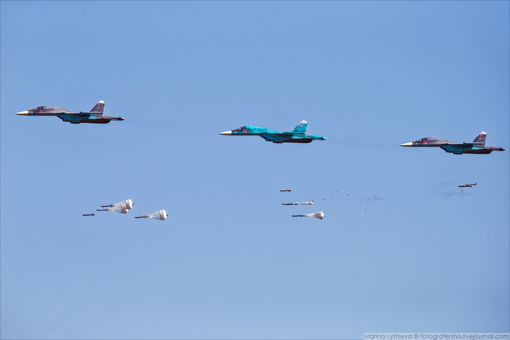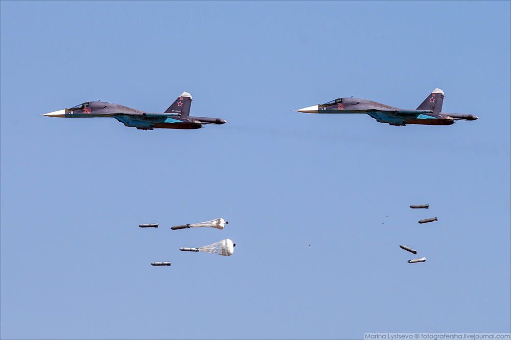 Задание для Су-24 и Су-34: полет по маршруту с переменным профилем на визуальную воздушную разведку и в зону на сложный пилотаж на малых высотах.