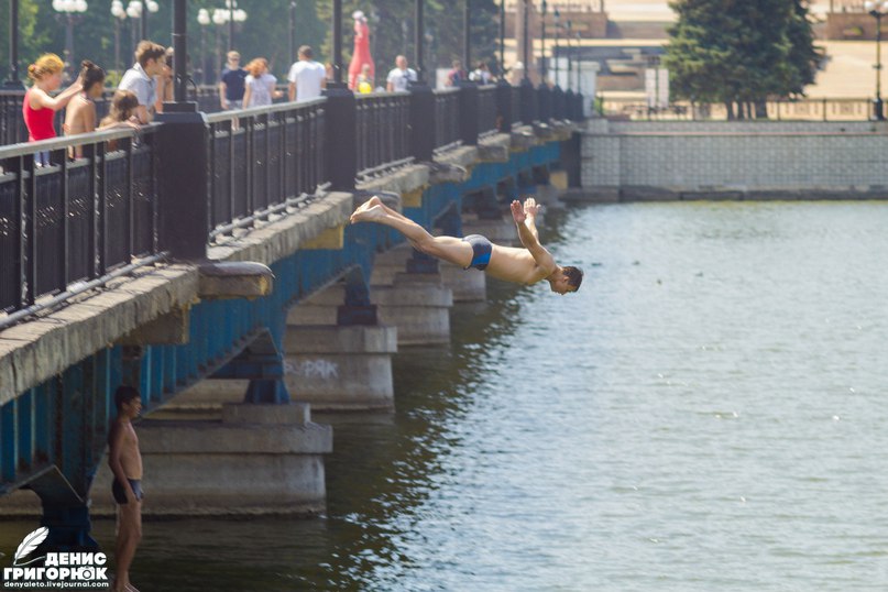 Мечты о мире и море заставляют окунуться в водоемах города. Несмотря на то, что сотрудники МЧС ДНР запрещают купаться в прудах Донецка, людей это не останавливает. Из-за невыносимой температуры воздуха дончане собираются у воды, чтоб хоть немного остудиться.