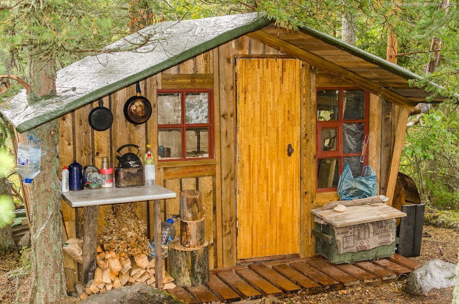 Такой домик наши соседи построили, очень даже ничего хибара, с печкой, путникам понравится.