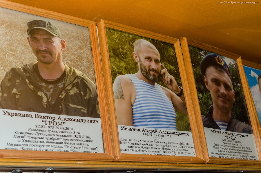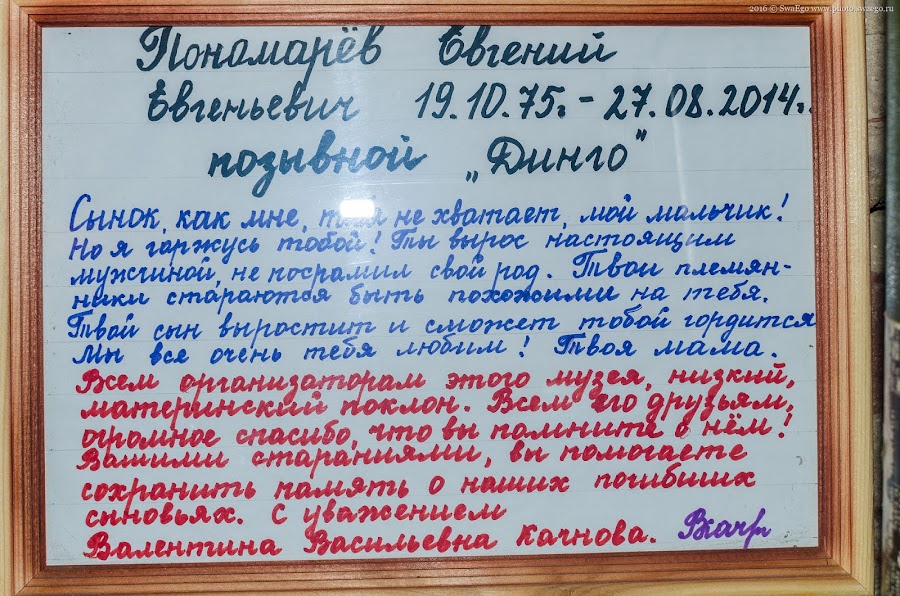 Также на входе колонны, где расписываются воины, как действующих рот-подразделений-батальонов ДНР-ЛНР, так и расформированных, точнее сказать, многие бойцы что защищали (защищают) Новороссию, на этих стенах есть.