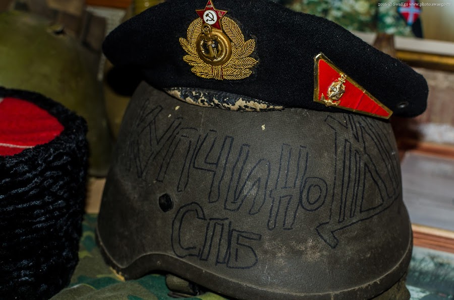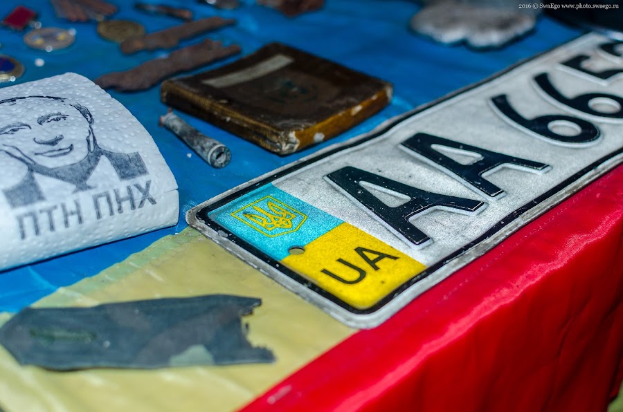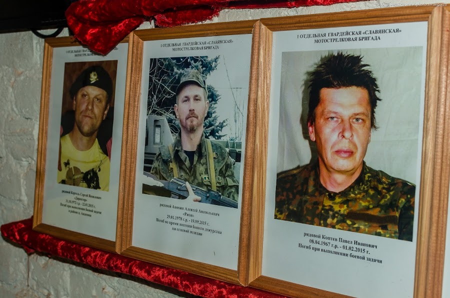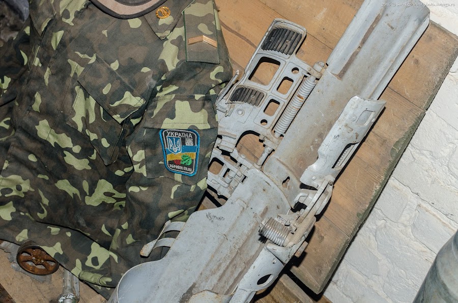 Пространство музея не позволяет особо разграничить ополченцев и "укропов", поэтому они рядом.