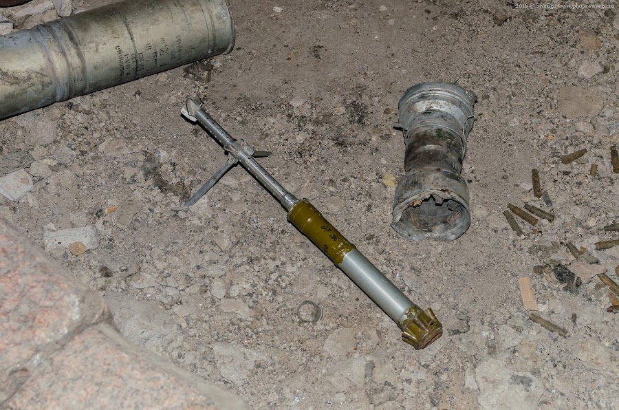 Вот таким кассетными бомбили города и сёла Донбасса. Это головная часть от РСЗО 9К57 "Ураган".