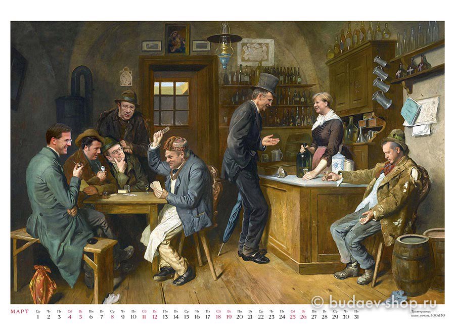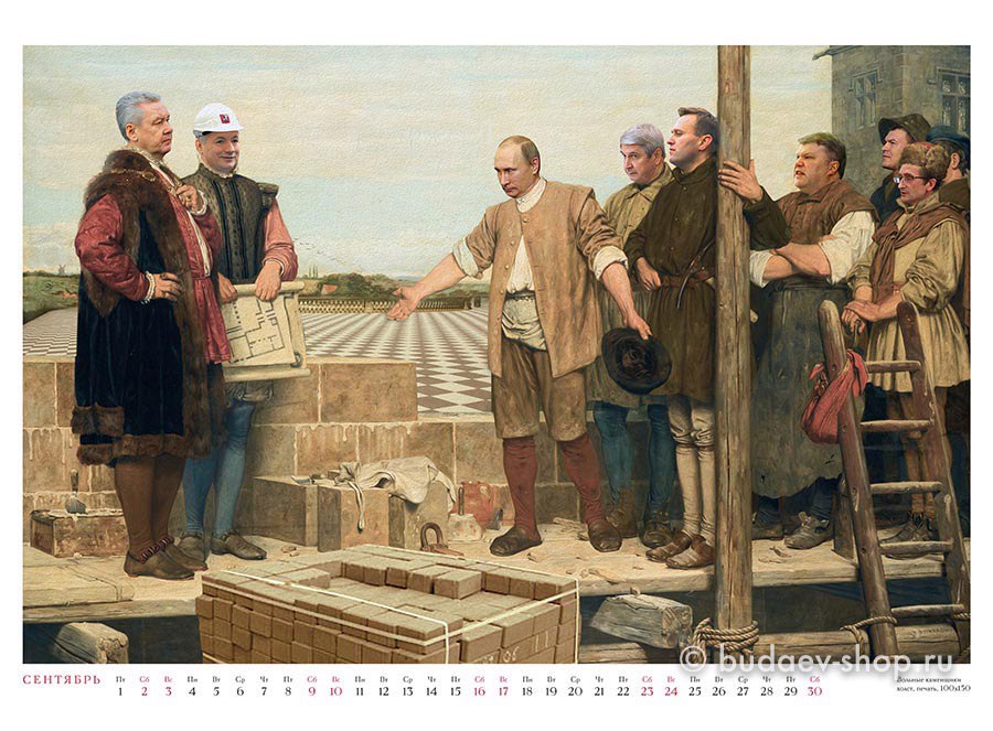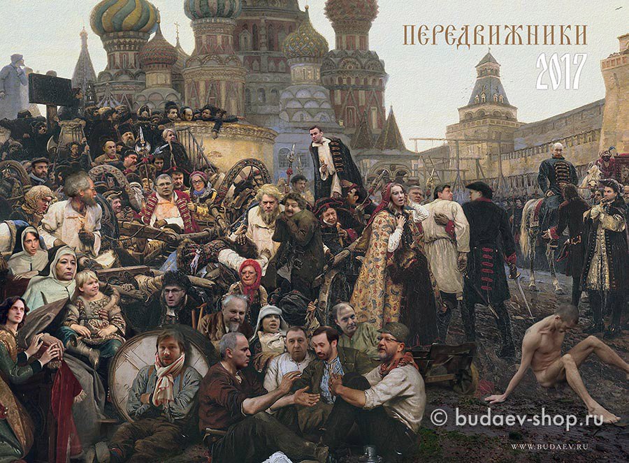 Календарь "Передвижники" посвящен международным политическим событиям. В создании календаря использованы классические живописные произведения художников. Это продолжение серии ежегодных календарей, которые выпускаются уже на протяжении 11 лет.