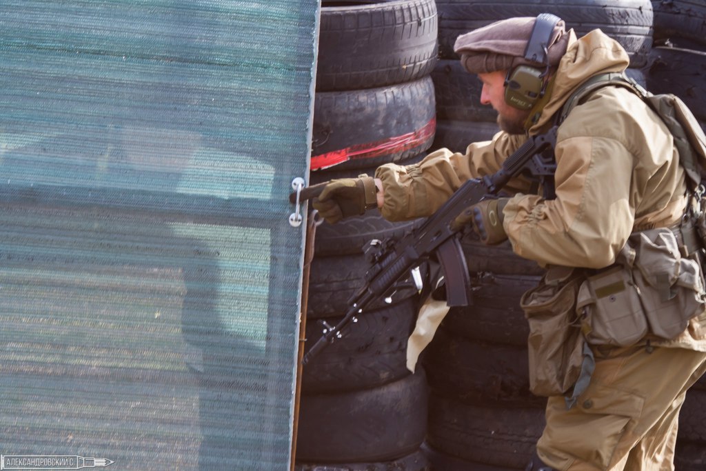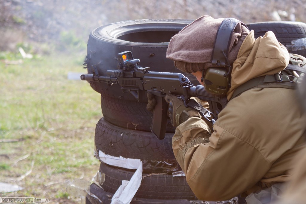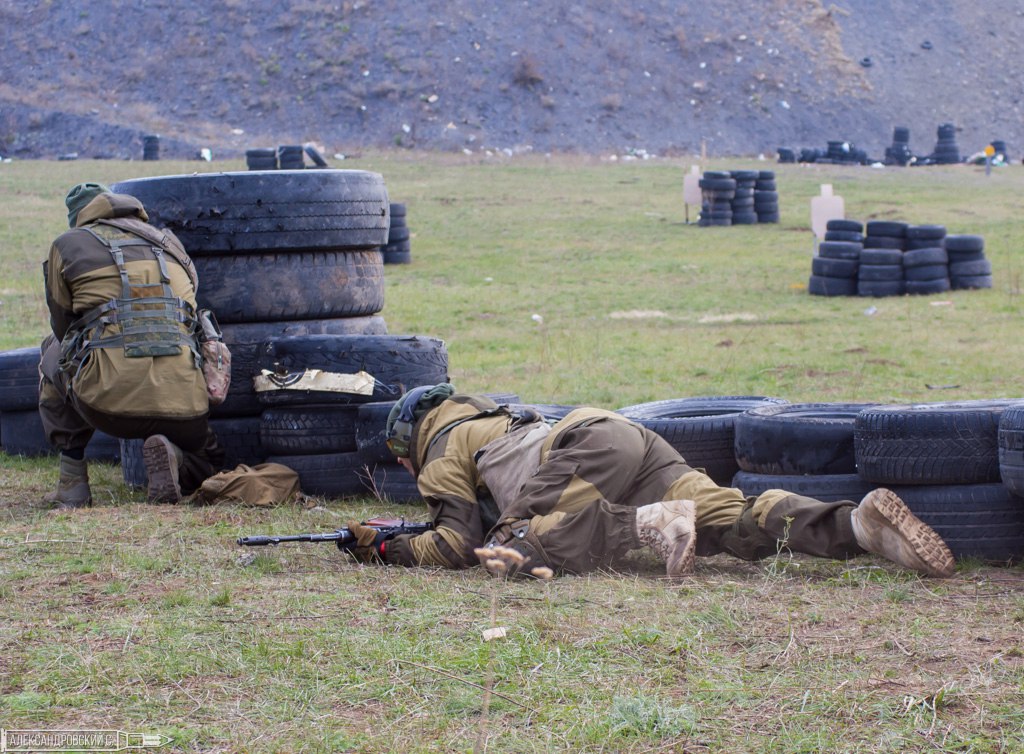 Упражнения были различные, это и стрельба с места с разных положений, и стрельба из укрытий, стрельба одиночными, очередями, имитация боя в помещении, работа в двойке по перемещению под прикрытием. Это самое сложное было упражнение вчера. Заключалось оно в том, что один боец ведет огонь по движущимся целям (качающиеся мишени), пока второй скрытно пробирается к следующему укрытию и занимает оборону там. После чего первый прикрывавший начинает перемещаться так же, скрытно, до следующей точки, занимая там оборону, и так - до тех пор пока из опасной зоны не выйдет крайний. При этом с собой еще и цинк с БК тянуть надо.