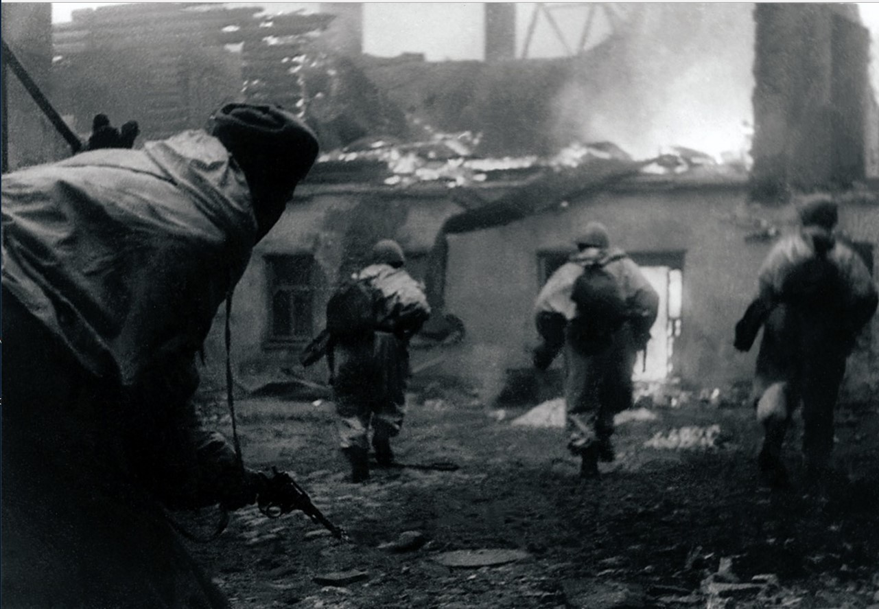 1944. Автоматчики подразделения В. В. Гладионова первыми врываются на окраину города. Гатчина